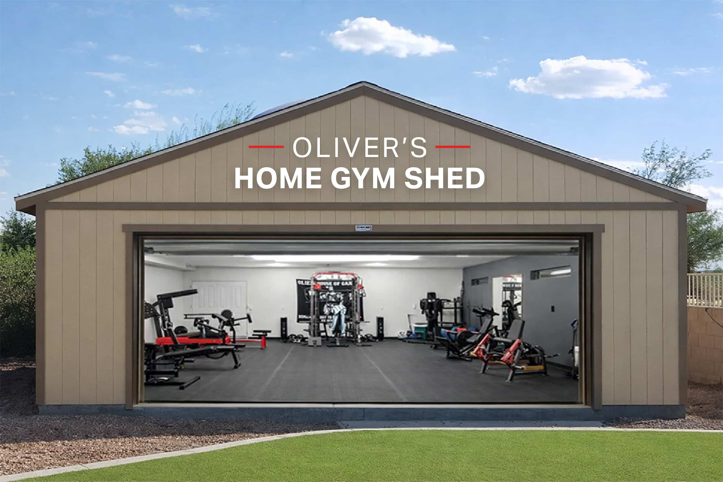 Oliver from Tucson added a gym to his backyard in a 25X25 Premier Ranch Garage. It fits 10 weightlifting machines, including pieces like a squat rack, leg press, isolated leg extension and curl machine, and more. He’s got that classic recycled rubber flooring, which he bought online, and an 8” thick concrete pad for the garage so it can handle all the weight.